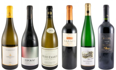 Uma seleção que reúne diferentes formas de interpretar o vinho, através de estilos, castas e abordagens distintas.Entre perfis mais frescos, estruturados ou aromáticos, cada vinho revela uma identidade própria e uma leitura particular do seu terroir.Este conjunto inclui:Itália: 2024 Tormaresca Chardonnay brancoPortugal: 2022 Esporão Reserva biológico tintoFrança: 2024 Domaine Daniel Dampt Petit Chablis brancoEspanha: 2011 Basape Reserva Rioja tintoAlemanha: 2019 Von Hövel Krettnacher Riesling Trocken brancoChile: 2020 Viña Haras de Pirque Ecràl Carménère Gran Reserva Vale del Maipo biológico tintoEnvio gratuito para Portugal Continental.(imagem meramente ilustrativa)Campanha exclusiva online e válida de 06/03/2026 até 13/03/2026 às 11h59, limitada ao stock existente e não acumulável com outras campanhas em vigor. A Garrafeira Nacional reserva-se no direito de adicionar ou retirar produtos da promoção assim como alterar os preços sem aviso prévio.