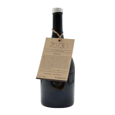 Este 70/30 é um enigma bem resolvido. Uma explosão inicial de limão e mel, que rapidamente revela uma complexidade surpreendente. A Fernão Pires atreve-se com notas de fruta madura – maçã e marmelo – e um toque de pimenta branca que lhe confere um caráter instável e sedutor. Mineralidade intensa, como pedra raspada, e uma acidez tão viva que parece desafiar o palato. Perfeito para acompanhar peixes grelhados com limão.