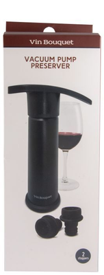 Bomba de vácuo manual para retirar o ar do interior da garrafa, após abertura da mesma. Desta forma, as características do vinho são perservadas por mais tempo.(imagem meramente ilustrativa)