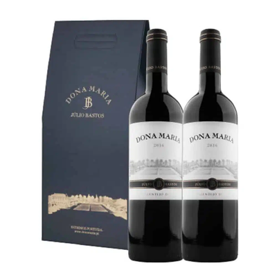 Conjunto de 2 vinhos Dona Maria Tinto em caixa de cartão. Contém sulfitos.