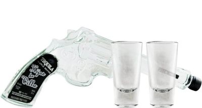 A marca mexicana Hijos de Villa surgiu com uma apresentação muito especial para a sua tequila. Esta Tequila Blanco vem numa garrafa com o formato de um revólver extravagante. Um revólver simulado feito de vidro para criar uma embalagem única para o "Tequila Blanco Pistol". O protótipo da garrafa de vidro é o revólver que foi usado durante a Revolução Mexicana (1910-1914) pelo herói nacional Pancho Villa e os seus bandidos. A garrafa revólver vem com 200 ml da melhor Tequila Blanco e a embalagem inclui ainda dois copos de shot onde poderá apreciar esta Tequila Hijos de Villa extremamente suave que vem engarrafada num revólver histórico.(imagem meramente ilustrativa)