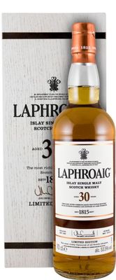 Fundada em 1815 por dois agricultores, Donald e Alexander Johnston, a destilaria Laphroaig, assim chamada devida à sua localização, "largo oco junto à baía", situa-se na costa sul da ilha Islay.Laphroaig apresenta uma variada gama de whiskies single malt, todos com um perfil envolvente e bastante característico, onde os aromas pungentes a terra da turfa azul fumada, o doce da cevada e o saudável perfume dos riachos de Islay, se revelam a cada prova.São 200 anos de aperfeiçoamento da técnica de destilação, de história familiar e até do próprio whisky escocês.(imagem meramente ilustrativa)